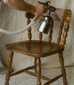 One or more of several designs of spray guns usually are used to apply finishing materials in booths.